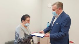 Dyrekcja ZOZ w Brodnicy uroczyście podziękowała Pani Alinie Królickiej – Dąbek lekarzowi oddziału anestezjologii i intensywnej terapii za długoletnią współpracę, która trwała 63 lata. Podziękowania podczas uroczystość złożyli także starosta brodnicki Piotr Boiński oraz przewodniczący Rady Powiatu Roman Pytlasiński, a także lekarze i pielęgniarki.