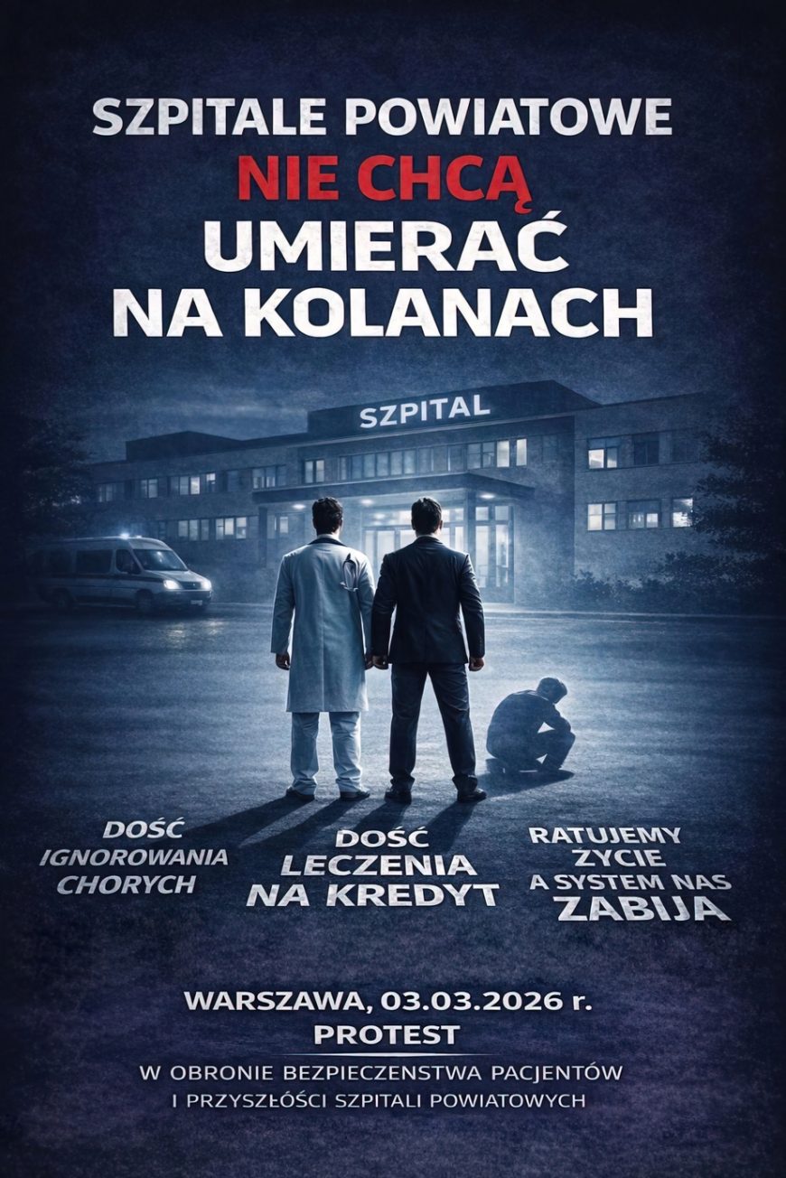 3 marca 2026 r. o godz. 12:00 pod Ministerstwem Zdrowia rozpocznie się manifestacja Ogólnopolskiego Związeku Pracodawców Szpitali Powiatowych![]()