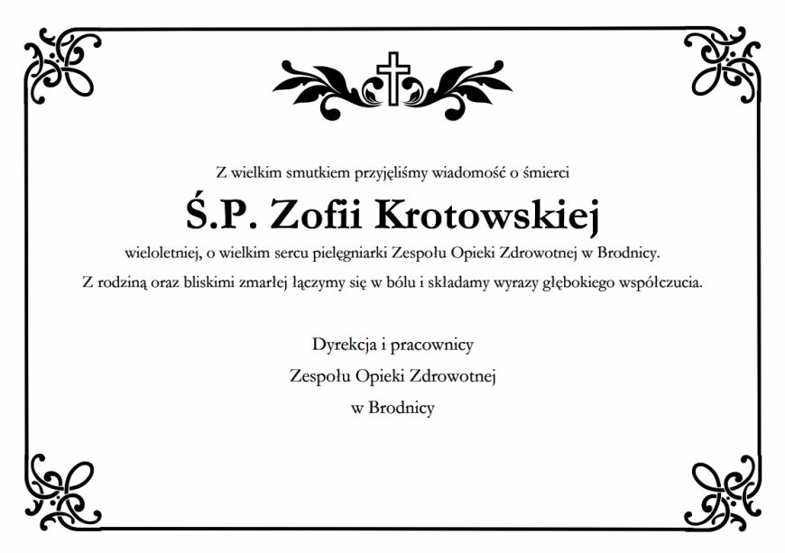 Z wielkim smutkiem przyjęliśmy wiadomość o śmierci Ś.P. Zofii Krotowskiej